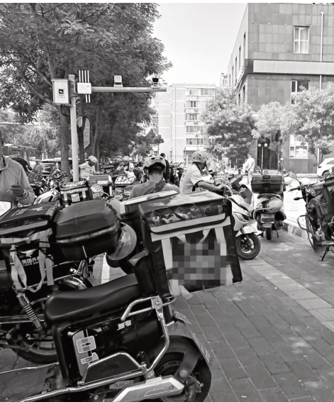 每到饭点,好多市集外就会乱停着大皆外卖车,占了东谈主行谈也堵了非活泼车谈。记者访问发现,部分市集临近外卖车占谈状况尤其严重。